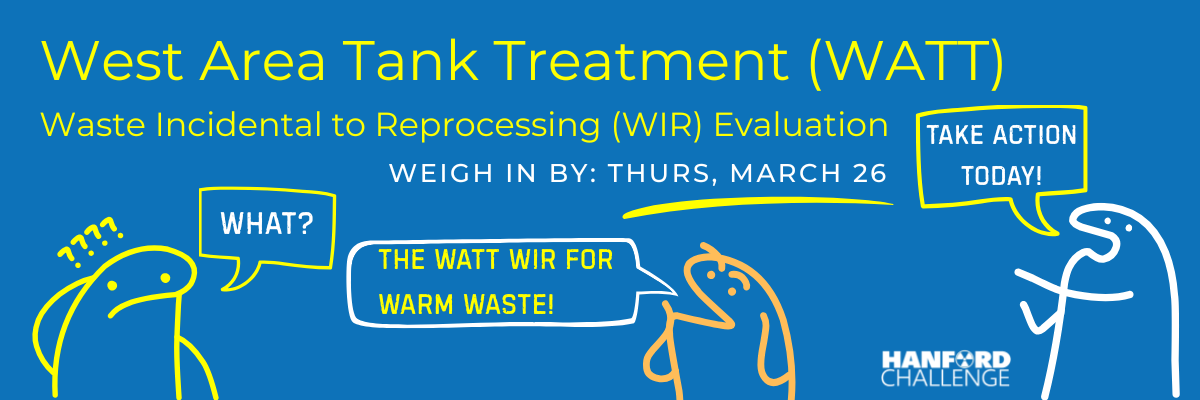 For Washington State Department of Ecology Hanford public comment periods and notices, click here. For U.S. Department of Energy Hanford public comments, notices, and events, click here.